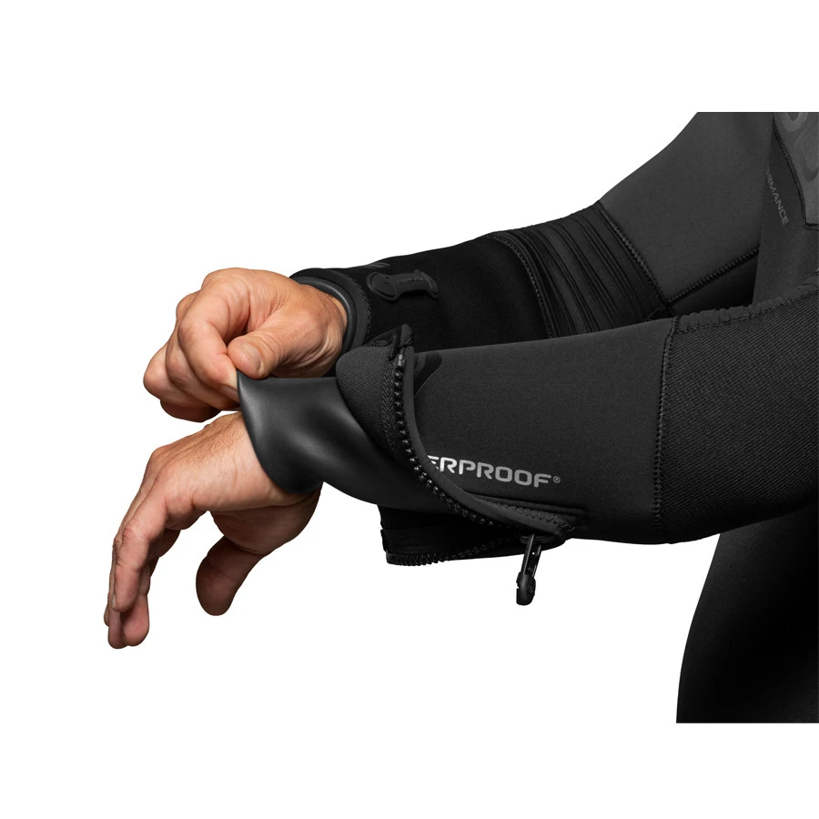 – Doubles Manchons généreux en néoprène glide skin super-extensible avec fermeture à glissière aux poignets et aux chevilles. La fermeture à glissière YKK #10 Vislon est équipée d’un curseur 100 % anti-corrosion et d’un ZipGrip antidérapant.