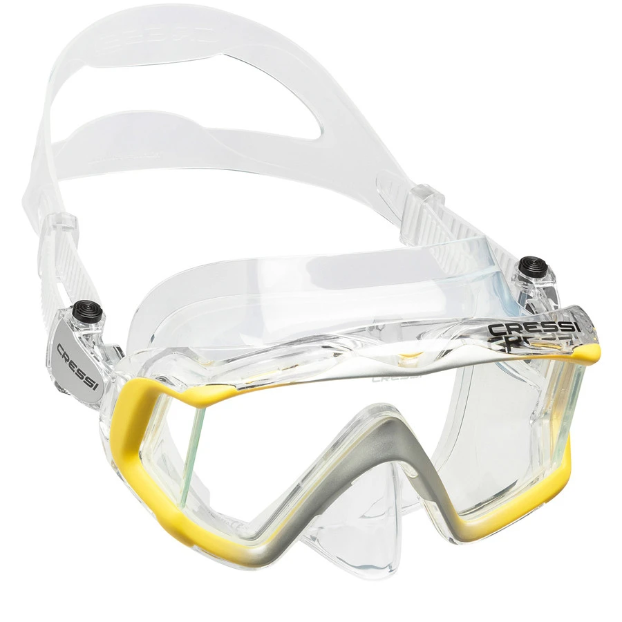 Le Masque de plongée Liberty Triside de chez Cressi vous permettra de tout voir sous l’eau grâce à son design panoramique à 3 verres
