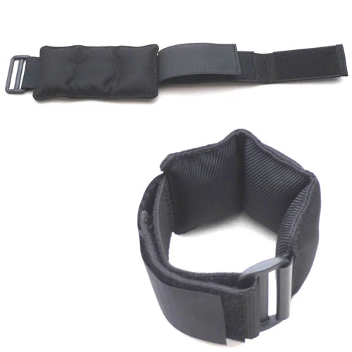 Pochette cheville grenaille INOX avec bandes scratch et boucle assemblée sur sangle élastique