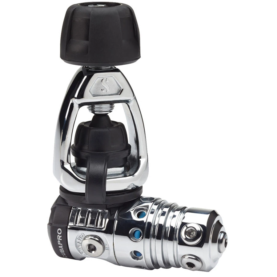 – Clapet piston équilibré surcompensé et corps en laiton chromé pour un confort respiratoire constant, quels que soient la profondeur, la pression dans la bouteille ou le rythme respiratoire.