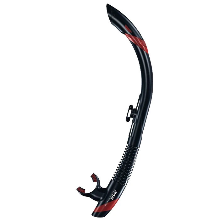 DotĂ© de toutes les caractĂ©ristiques du tuba SV1, le tuba SV2 a Ă son extrĂ©mitĂ© supĂ©rieure, des Ă©vents horizontaux disposĂ©s de façon Ă diffuser l’eau qui entre dans le tuba
